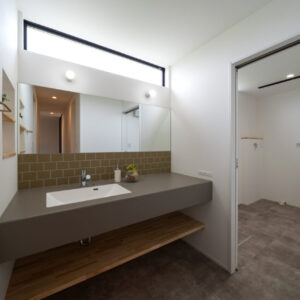 ポイントは、浴室 → 洗面脱衣 → 物干しスペース → 収納が一直線でつながっていることです!