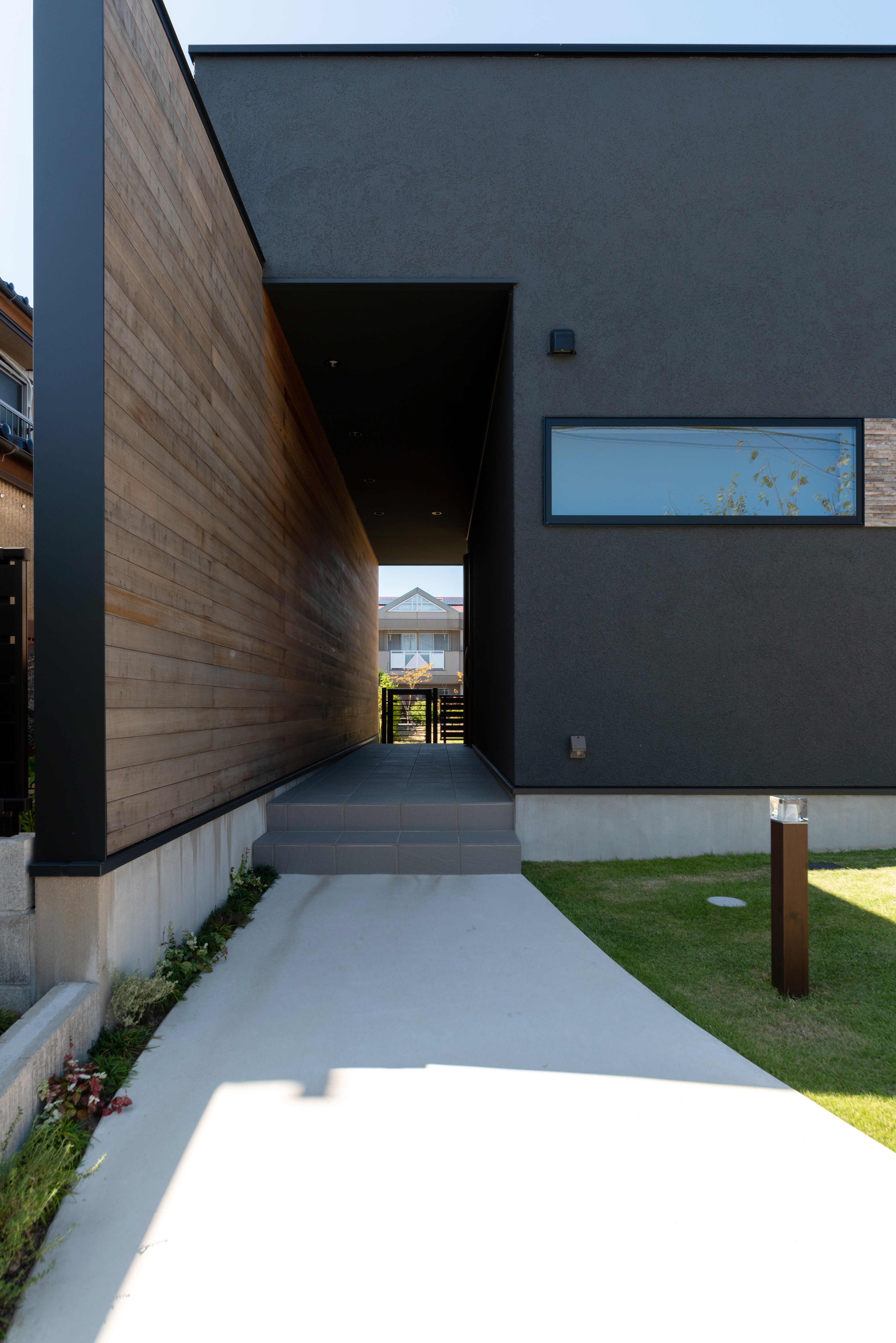 日常をリセットする、玄関へと続く少し長めのアプローチ。