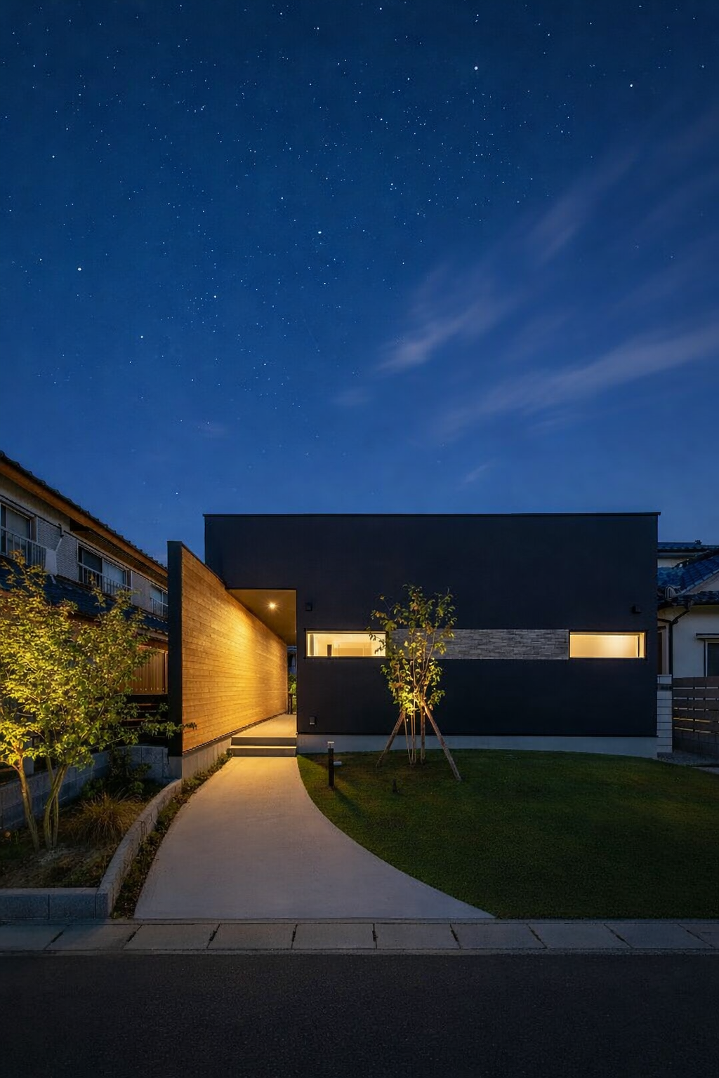 凛とした大人かっこいい塗り壁の外壁。